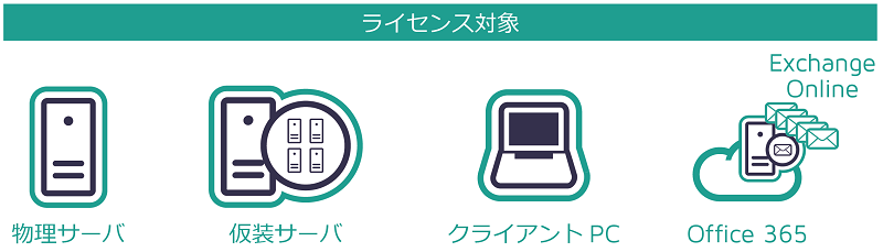 | HA環境への対応 | Microsoft Hyper-V、Microsoft SQL のAlwaysOn、Microsoft Exchange Server の DAG環境のサポート |