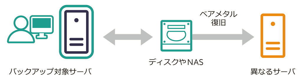サーバのOS、アプリケーション、データを「丸ごとバックアップ」し、「丸ごと戻す」ことができます。専門知識の無いユーザでも、サーバ1台の小規模環境からバックアップ/リカバリできる簡単さと運用負荷を軽減する高度な機能を標準で備えています。 バックアップ対象は、Windowsだけでなく、Linuxにも対応しています。 |