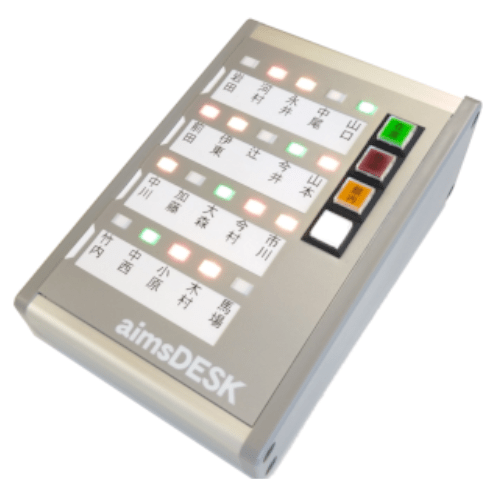 在席管理端末「aimsDESK」のご利用・併用も可能です。「aimsDESK」はページ下部の「aimsPC 姉妹製品のご案内」でもご紹介しております。